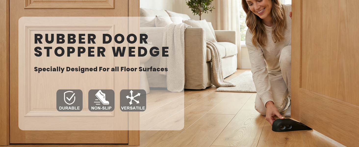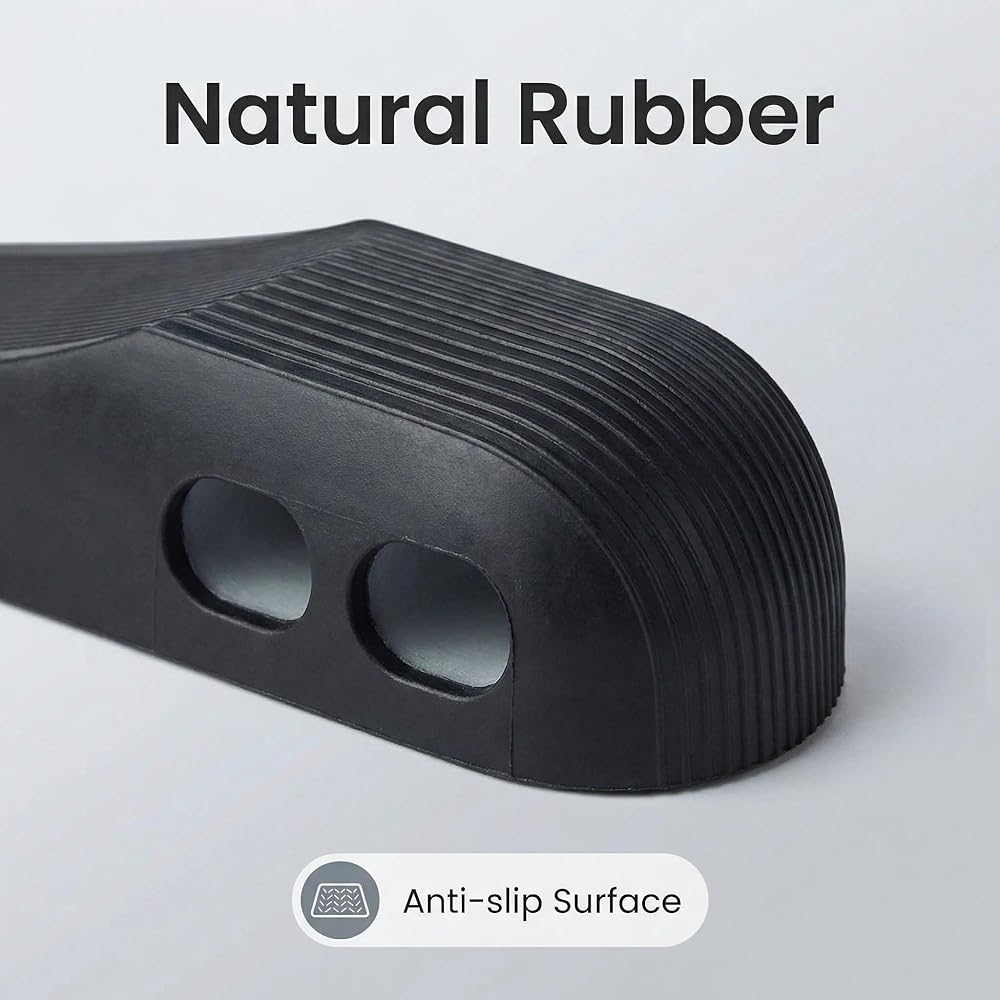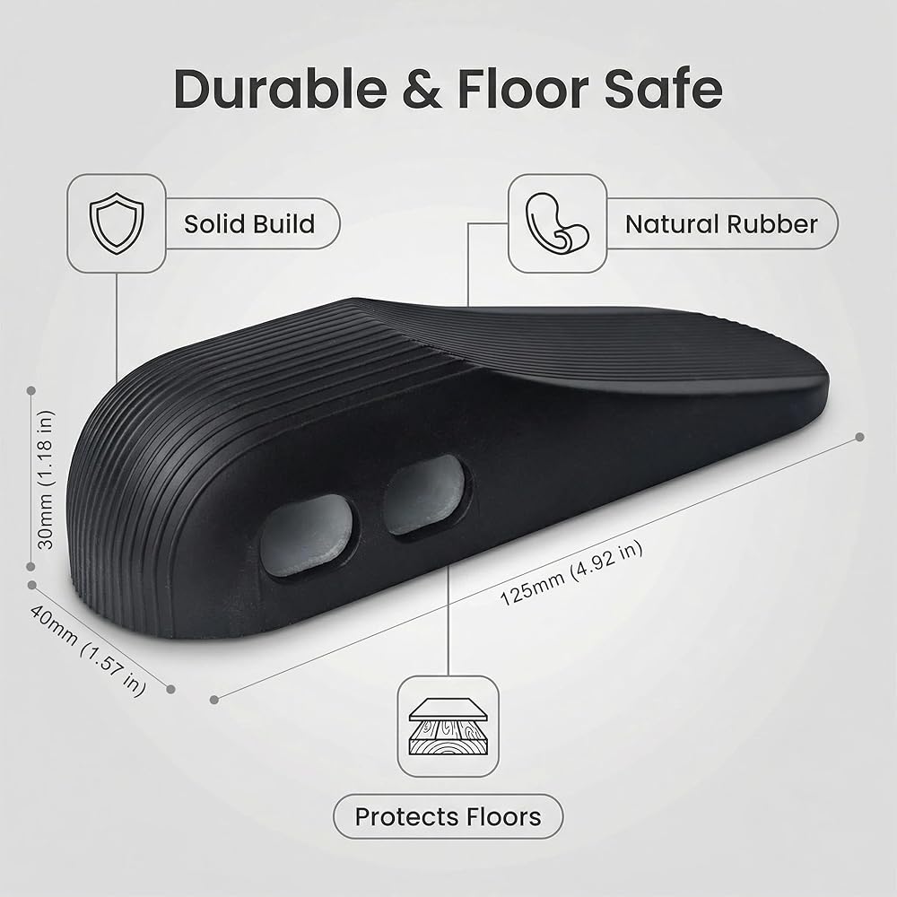 Premium Rubber Door Stoppers: Rubber door stoppers for bottom of door are made of soft and durable premium odorless rubber, Doorstop is not only can waterproof, rust-proof, But also not easy to deform or damage, Perfect protect hardwood and laminate flooring from scratches and dents. The top and bottom of the door stopper are designed with non-slip pads, The doorstop bottom grip the ground well, providing the best friction to keep door open