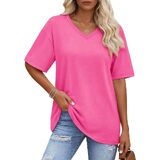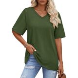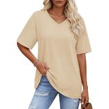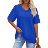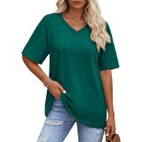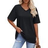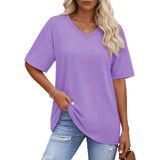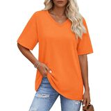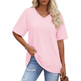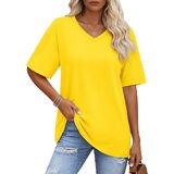 Solid color, oversized t-shirt, below hip length, loose fit designed can cover the tummy well and allowing you stay in comfy and stylish at the same time, yellow vneck tshirt women is such a basic casual tee suitable for every day wear.