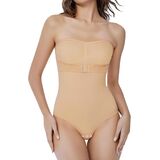 【Non Compression Bra Design】 This brown strapless bodysuit offers natural bust support without flattening. Designed as strapless brown bodysuit and strapless bodysuit lingerie, it shapes gently while remaining breathable. Perfect as shapewear for women and women's shapewear bodysuits, it enhances curves with comfort and flexibility.