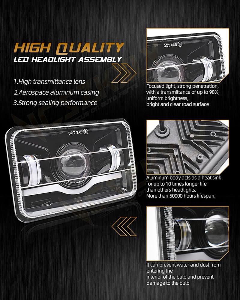 Each headlight assembly comes with high power lamp beads inside for max lighting output and performance. Part number: H4651 H4652 H4656 H4666 H4668 H4642 H6545.
