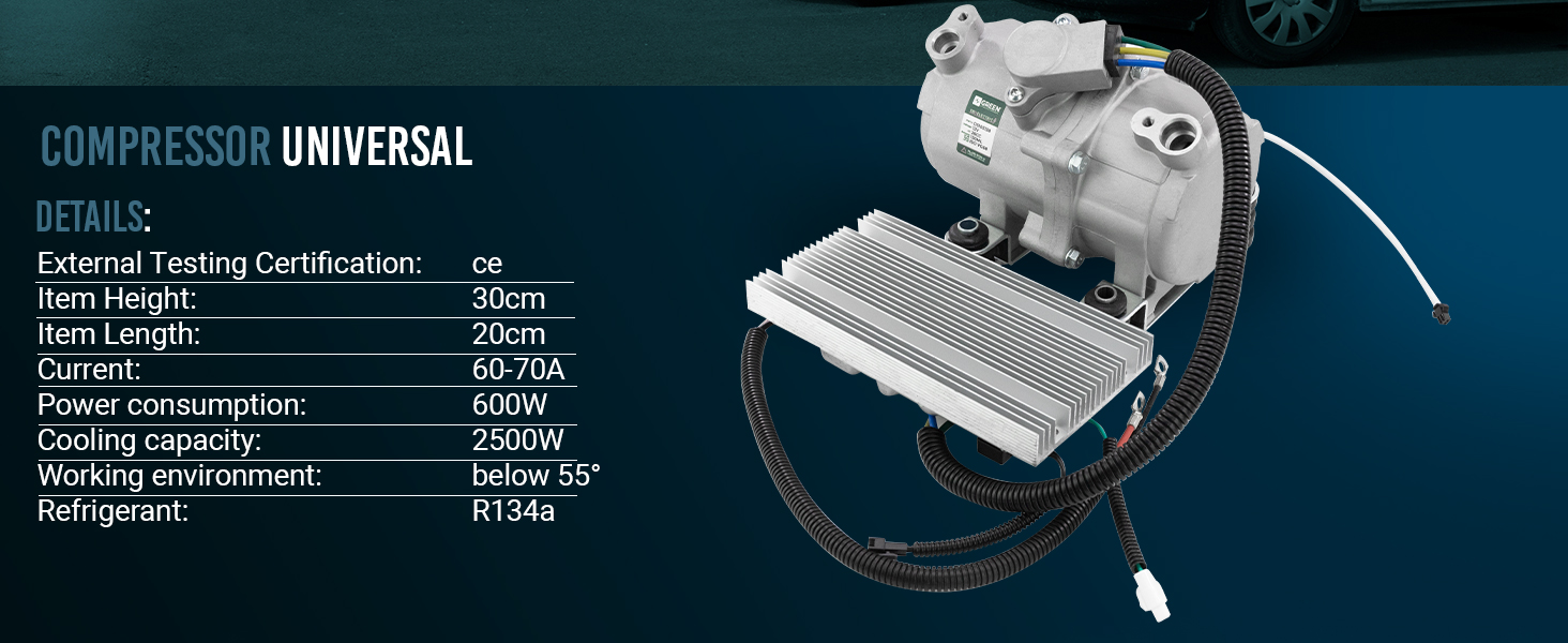 ELECTRIC AUTOMOTIVE AC AIR CONDITIONING COMPRESSOR UNIVERSAL APLICATION FITS CAR, HD-TRUCK & VANS - 12V