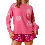 Feature: Heart holiday sweater,women heart prints sweatshirts,cute y2k sweater,valentines day shirt for women,contrast sequin,crew neck valentines tshirt, sequins sweatshirts,long sleeve heart print sequin sweatshirt,love graphic print shirt top, sequins valentine's day sweater,round neck oversized pullover