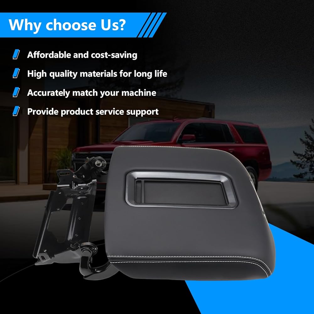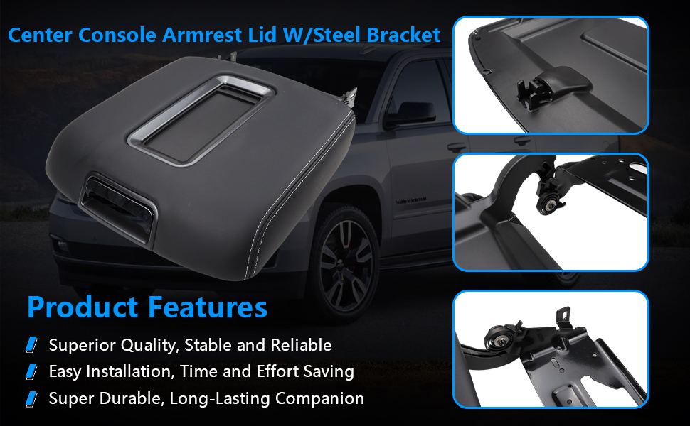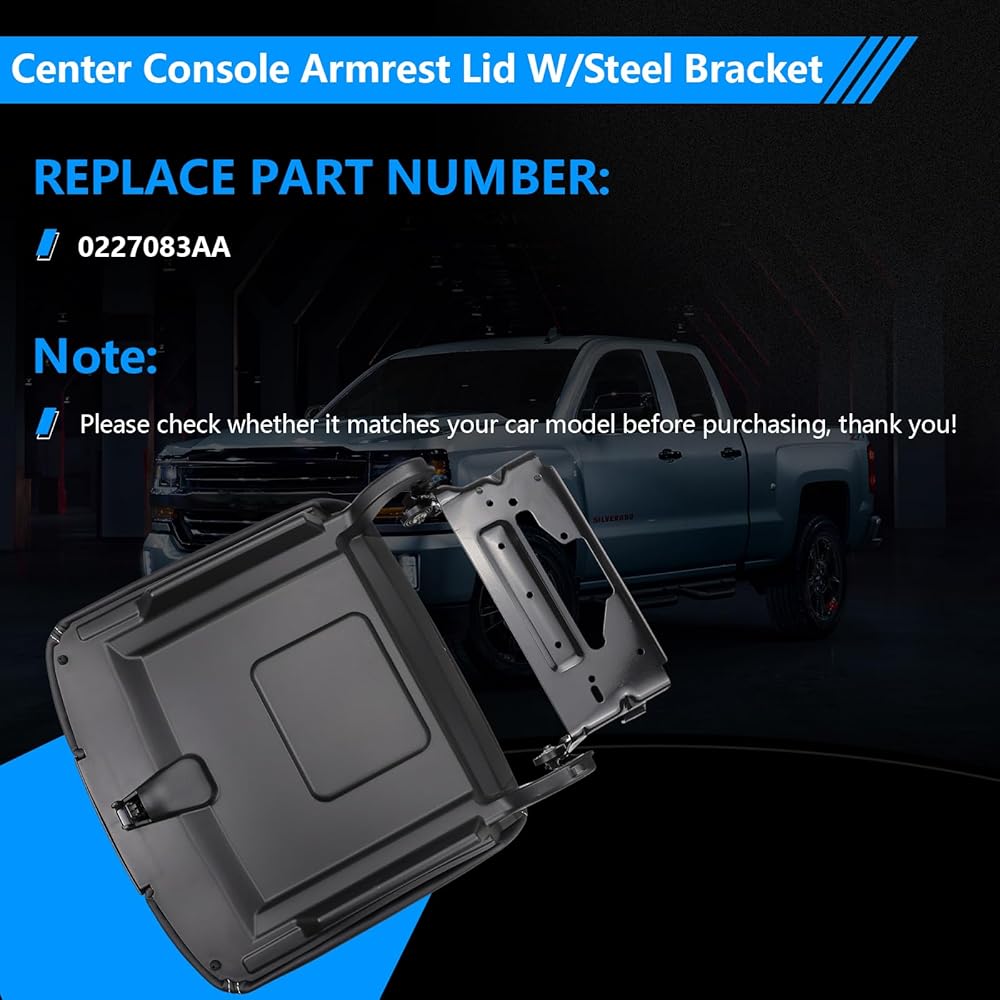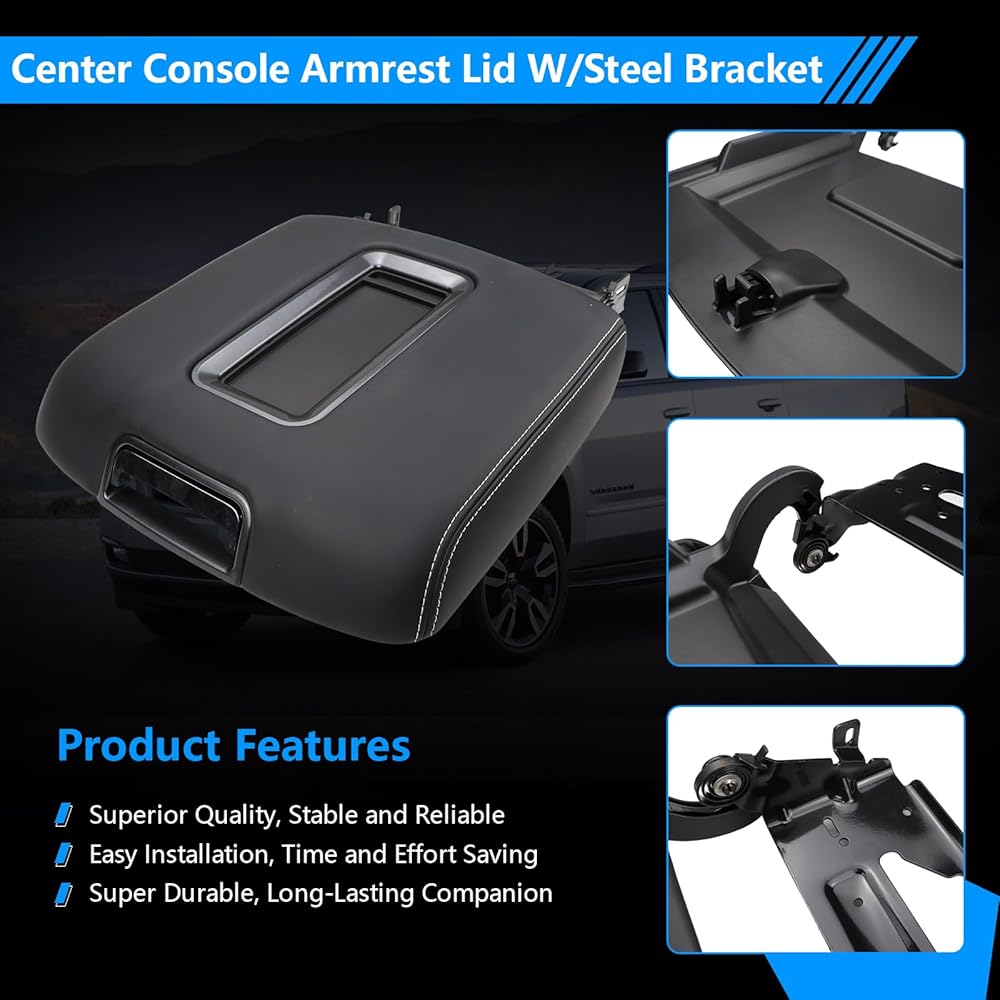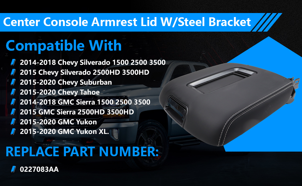 Center Console Armrest Lid W/Steel Bracket Compatible with 2015-2020 Chevy Tahoe,Suburban,GMC Yukon/Yukon XL for 2014-2018 Chevy Silverado/GMC Sierra 1500 2500 3500 Replace for 0227083AA