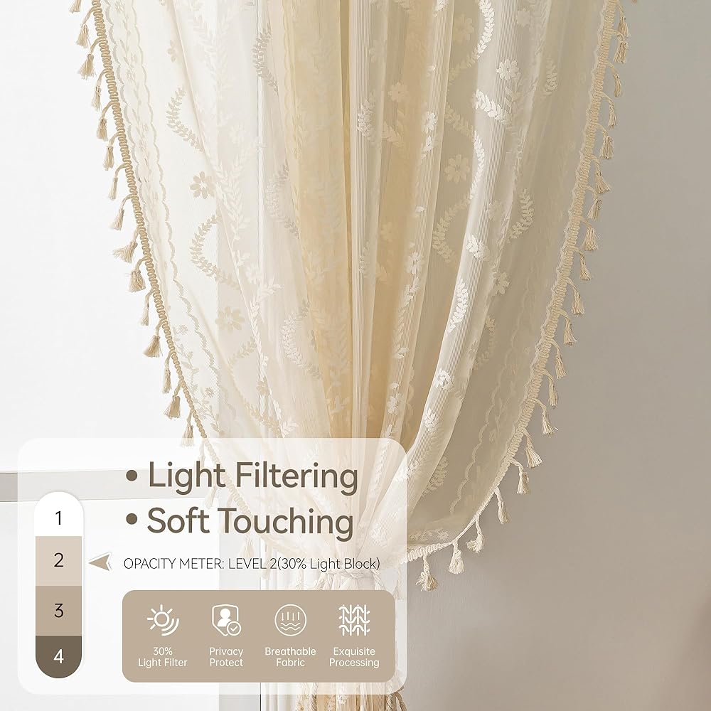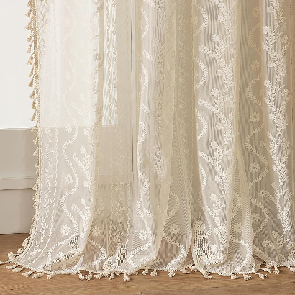 Vintage home decor:Enhance your living space with our exquisite beige lace curtains, where elegance meets tranquility. Designed to infuse every room with refined sophistication and a serene ambiance, these curtains capture the gentle essence of nature. The soothing cream hue evokes the freshness of the outdoors—perfect for all season, when a touch of natural beauty can transform your home into a peaceful retreat.