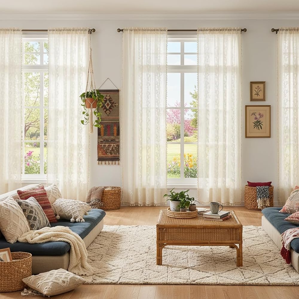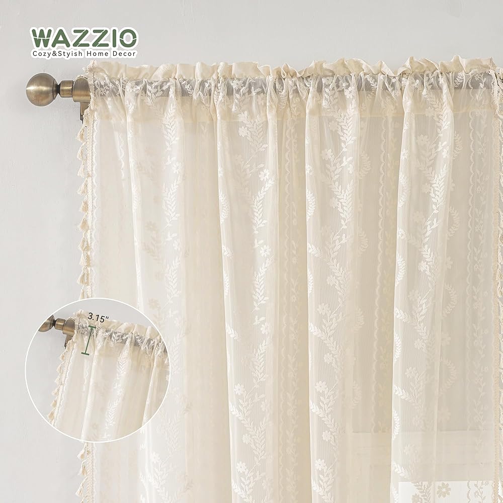 Package Includes:2 pack W52"xL80" lace sheer curtains (104" total width) with 3" rod pocket for easy installation,Compatible with standard rods ≤1.6" diameter,Ready to transform bedrooms/living rooms instantly