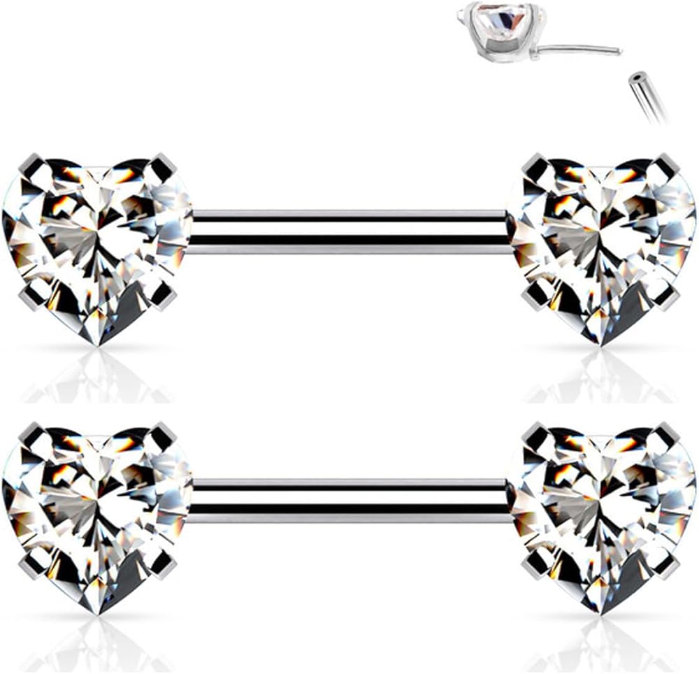 Multiple Uses: These Prong Set Crystal Heart CZ Stud Design & Popular as Nipple Piercing Jewelry. Best gift for Birthday, Girlfriend, Lovers, Couple, Valentine's Day, Christmas, Halloween Party and more.