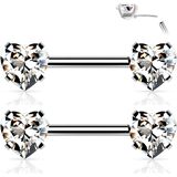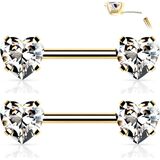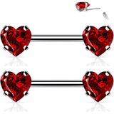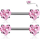 316L Surgical Steel 14G Threadless Push In Nipple Barbell Prong Set Crystal Heart CZ Press Fit Nipple Rings Bars Piercing Jewelry 1/2 Inch (12mm) - Sold As Pair