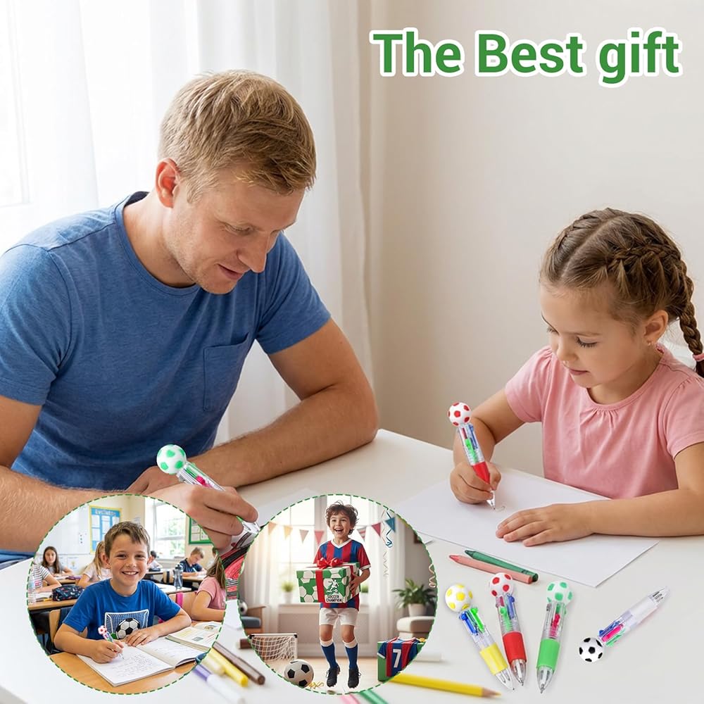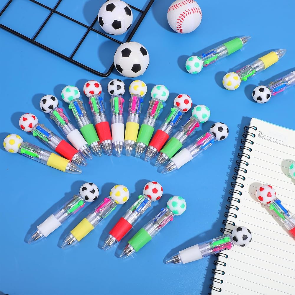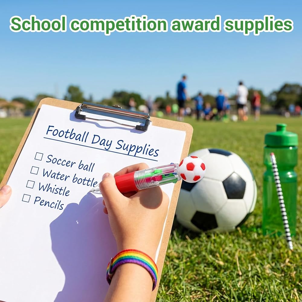 【Perfect Size】This 4-in-1 multicolor soccer ballpoint pen is approximately 3.7 inches long, a perfect length for long-term use. Suitable for adults, its compact size makes it easy to carry in a backpack or on the go