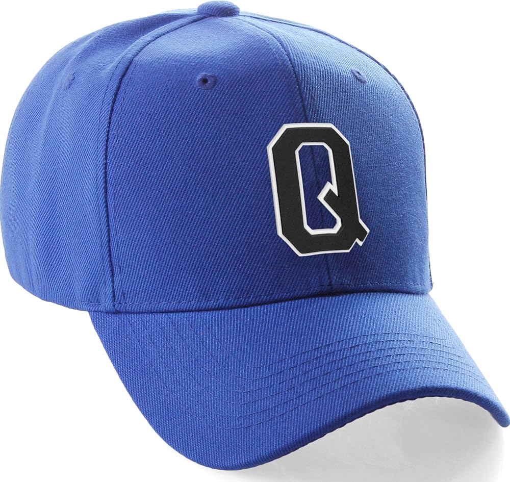 Classic Baseball Hat Custom A to Z Initial Team Letter, Blue Cap White Black in Kuwait