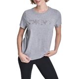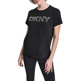 This DKNY Women's T-Shirt is a Short Sleeve Crew Neck Ombre Rhinestone Logo T-Shirt