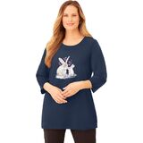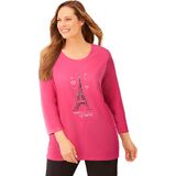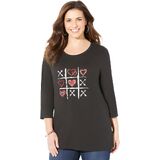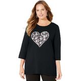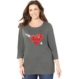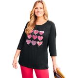 Our casual tee ups the fun factor with novelty screen prints with sequins or glitter embellishment. A natural pairing with your favorite jeans. Perfect for Valentines Day, St. Patrick's celebrations or any time you want to brighten your outfit. FABRIC: Super soft, breathable, and comfy cotton jersey. FIT: Relaxed silhouette features a scoop neckline, three-quarter sleeves, and straight hem. 100% Cotton Machine wash Imported Plus Size Tee Regular: 31” length Petite: 29” length Plus Sizes 0X-6X, Petites: 0XWP-3XWP Catherines