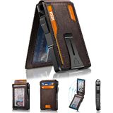 COMPACT BODY, LARGE CAPACITY: Compact 0.55" profile holds up to 14 cards and 15+ cash. Main case fits 7–9 cards and the leather flap holds 5 (2 ID windows included). Removable money clip included with screwdriver. More capacity, same pocket-friendly footprint.