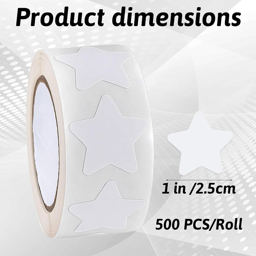Perfect Size & Quantity: Each roll contains 500 white star stickers, each measuring 1 inch in diameter. Ideal for various applications, these self-adhesive star stickers are designed to meet your needs efficiently.