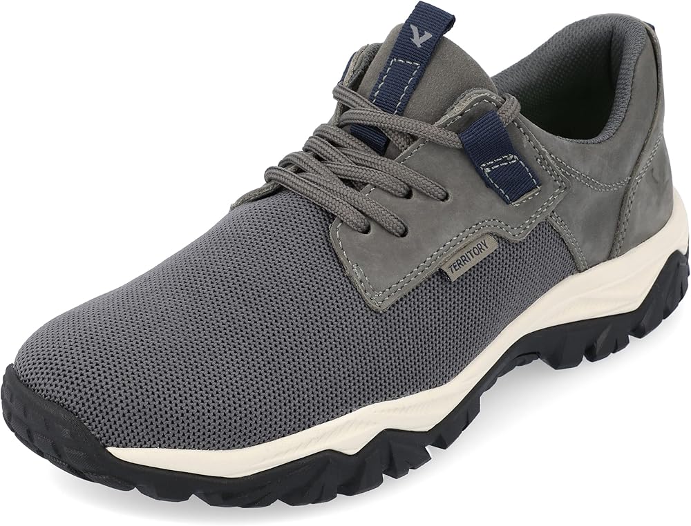 The Trekker sneaker from Territory is the perfect shoe to keep your feet comfortable around every turn with its 6 mm Tru Comfort Foam insole, cushioned collar tongue, and round toe. Upper Material: Genuine Leather & Knit Fabric Toe Style: Round Heel Height/Type: 1 1/2- in Sole Closure Type: Lace-Up Shoe Width: Medium Footbed: 6 mm Tru Comfort Foam All measurements are approximate and were taken using a size 9. Please note measurements may vary slightly by size.
