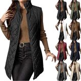 Puffer Vests for Women Trendy Sleeveless Quilted Jacket Zip Up Vest Lightweight Warm Padded Vest Coat Long Outerwear
