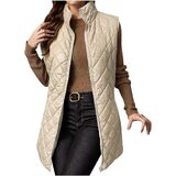 Elevate your cold-weather style with this sophisticated long quilted vest in a versatile beige shade.