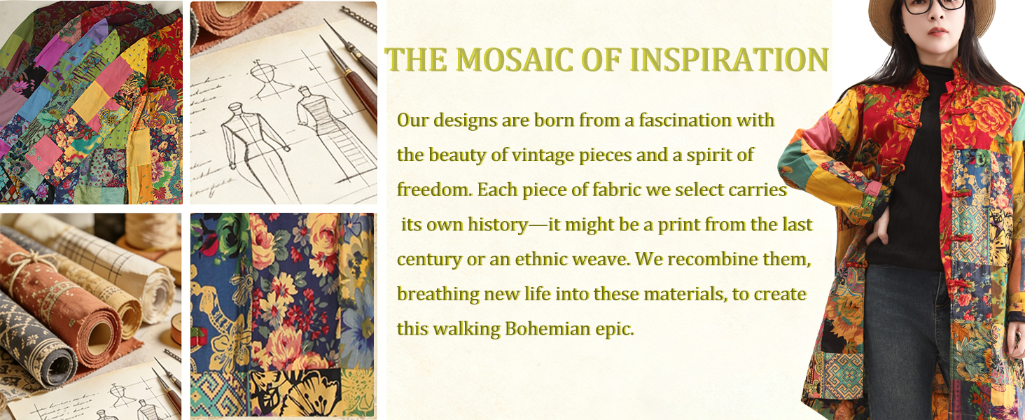 Versatile Styling for the Free Spirit One Jacket, Endless Styles This patchwork jacket is your ultimate wardrobe chameleon. Bohemian Mode: Pair with wide-leg pants and a colorful crossbody bag for free-spirited days exploring markets or trails. Urban Casual: Dress it down with jeans and combat boots for a cool, edgy look that works for coffee runs or city walks. Note: Each jacket is uniquely handcrafted, so the patchwork layout and colors may vary slightly—just like you.