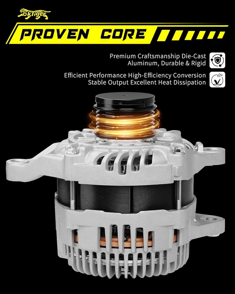 Quiet Operation & Efficient Design: Oktiger alternators feature upgraded bearings and double-lipped seals designed to reduce friction, vibration, and noise. The efficient construction helps minimize power loss for optimized vehicle electrical performance
