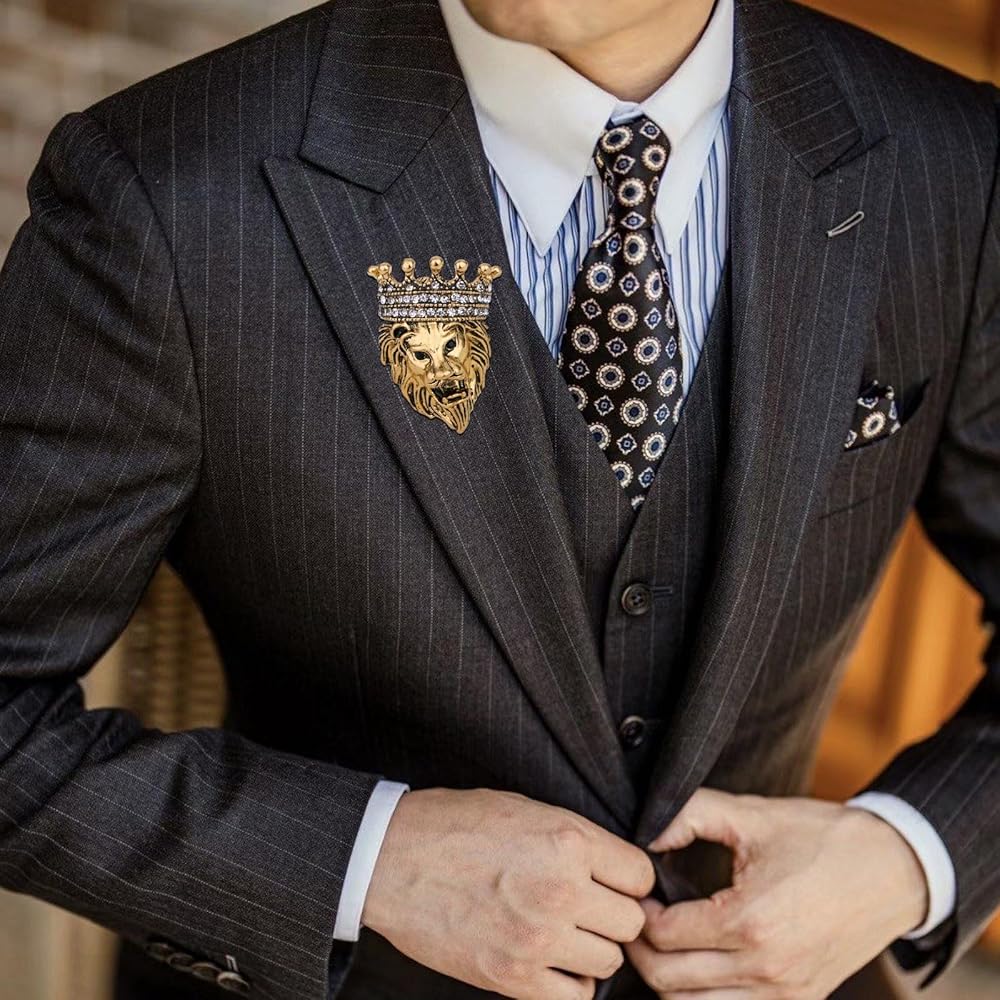 Retro Jewelry: Men's lion brooch with an ancient crown paired with the king of the grassland lions in retro style, which can highlight the charm men and show unique style
