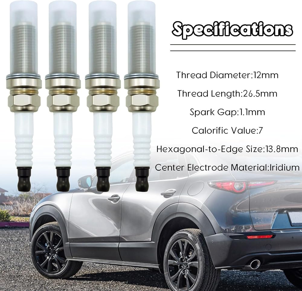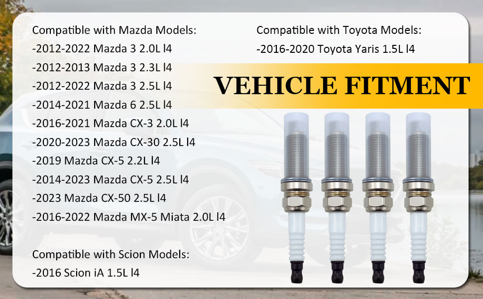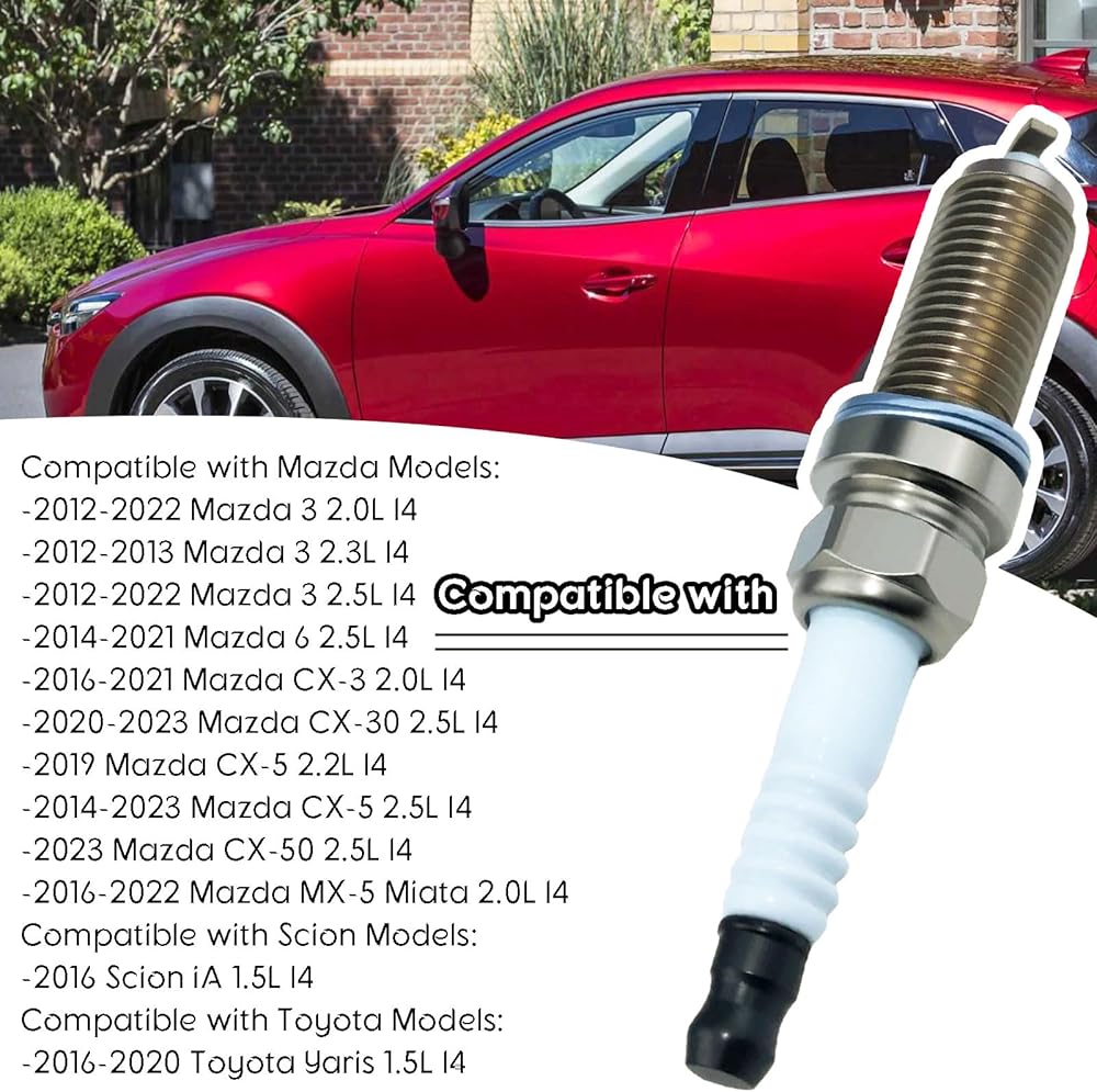 [Compatible with]Iridium Spark Plugs Compatible with Mazda 2012-2022 3, 2014-2021 6, 2016-2021 CX-3, 2020-2023 CX-30, 2014-2023 CX-5, 2023 CX-50, 2016-2022 MX-5 Miata; Compatible with Scion 2016 iA; Compatible with Toyota 2016-2020 Yaris