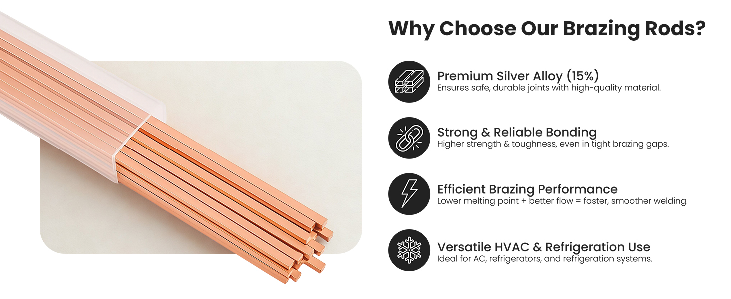Engineered BCuP-5 Alloy – Each 15% silver brazing rod is made from high-grade copper-phosphorus-silver alloy, offering excellent strength, corrosion resistance, and smooth brazing results.