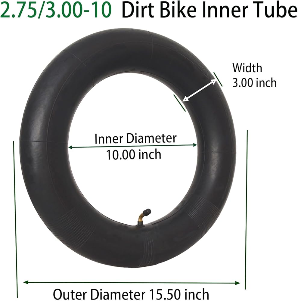 2-Pcs 2.75/3.00-10 Inner Tube 3.00-10 2.50x10 80/100-10 2.75-10 Dirt Bike Inner Tube, Bent Valve Stem