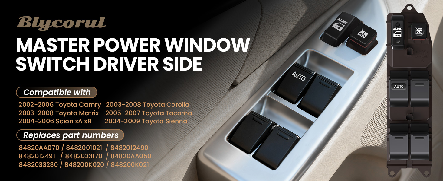 【Compatibility】This window switch is specifically designed for 2002-2006 Toyota Camry, 2003-2008 Toyota Corolla/Matrix, 2004-2009 Toyota Sienna, 2005-2007 Toyota Tacoma, and Scion xA/xB. Perfect fit for driver side installation with 14pins configuration.