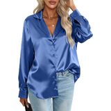 Elegant Design: Command attention with the sophisticated blazer collar shirt design.This women's V-neck satin blouse elegantly frames the neckline, adding a sharp and refined finishing touch that effortlessly elevates the overall look.