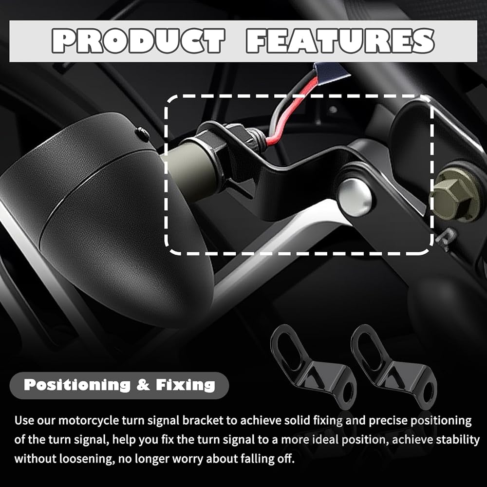 Positioning & Fixing: Use our motorcycle turn signal bracket to achieve solid fixing and precise positioning of the turn signal, help you fix the turn signal to a more ideal position, achieve stability without loosening, no longer worry about falling off