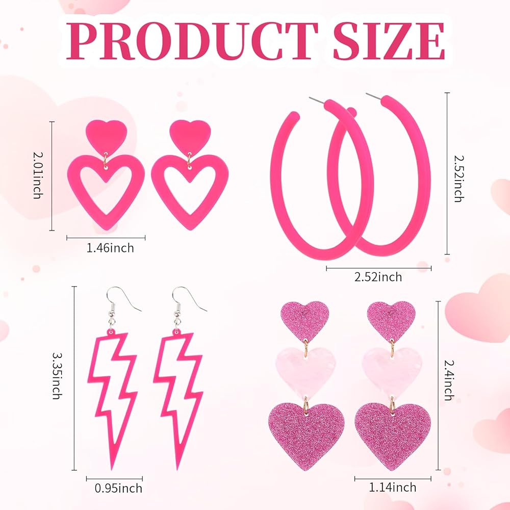 Wide Occasions - Our acrylic pink earring sets are beautifully made and brightly coloured, these hoop earrings are suitable for everyday wear and can also be applied to many important occasions such as 80's parties, fashion parties, theme parties, family gatherings, birthday parties, weddings, graduation parties, everyday wear.