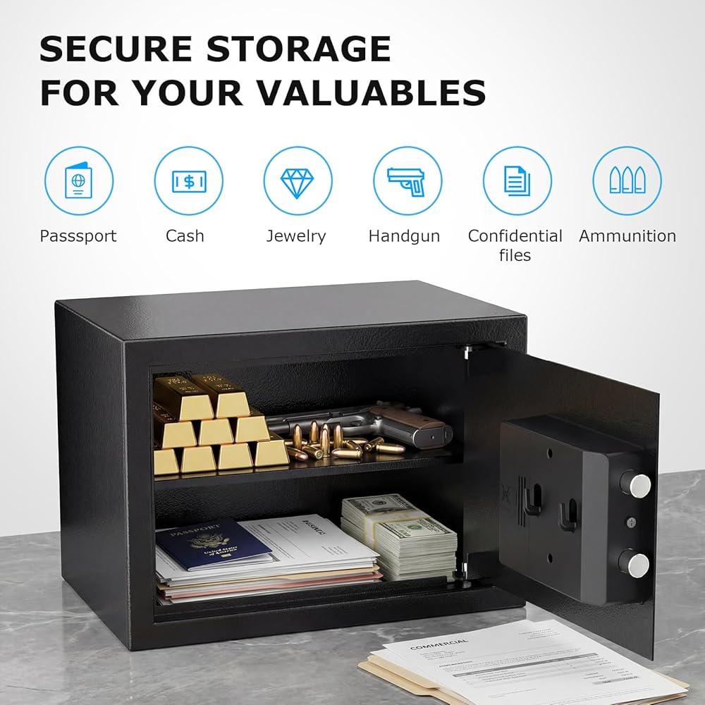 Bonsaii 0.6 Cubic Fingerprint Safe Box, Biometric Security Safe with Electronic Keypad & Removable Shelf for Valuables, Jewelry, Documents, Home Office Hotel Use, 9.84" x 13.78" x 9.84", SF002