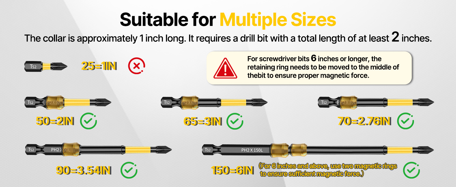 【UNIVERSAL COMPATIBILITY】 Engineered for versatility, this screwdriver head magnetic ring is perfectly sized for all standard 1/4 inch (6.35 mm) hex screwdriver bits, power drill drivers, and impact wrenches. A must-have accessory for professional carpentry, furniture assembly, and automotive repairs—no extra tools required for installation