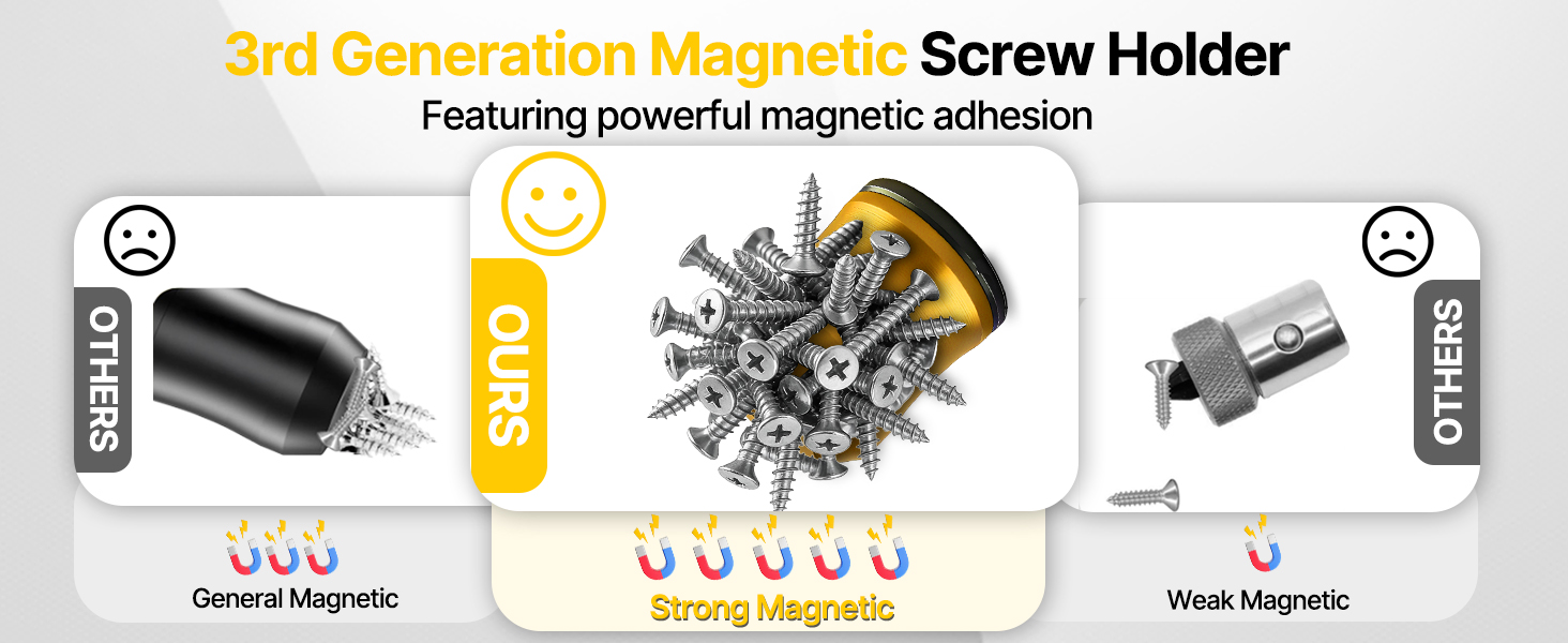 【DUAL-LAYER MAGNETIC POWER】 Tired of screws slipping or falling in tight corners? Our magnetic screw ring features upgraded dual-layer magnetism technology that instantly doubles the gripping force. Unlike standard rings that lose grip over time, this bit magnetizer ensures every screw stays locked onto your 1/4" hex bit for effortless one-handed operation