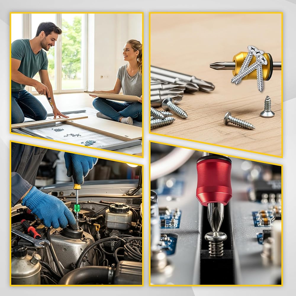 【WIDELY APPLICABLE SCENARIOS】 From overhead ceiling installations to intricate electronic repairs (like phones or laptops), this removable magnetic holder eliminates the frustration of lost fasteners. Ideal for mechanics, woodworkers, and DIY enthusiasts who demand precision and efficiency in every turn
