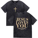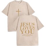 【Bold Front Cross Design】 Features a striking cross graphic prominently displayed on the front, paired with the uplifting "Jesus Loves You" message. This visually impactful design serves as a clear statement of faith, making it a conversation-starting piece of religious apparel