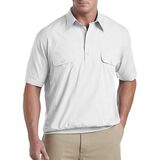 Perfect for the guy who's always on the move! This shirts' wrinkle-resistant fabric is perfect for travel, while its ribbed-knit banded hem keeps it in place.60% cotton/40% polyester * Point collar * Button-through chest pockets * Short sleeves * Ribbed-knit mesh side panels and hem * Machine wash; imported *