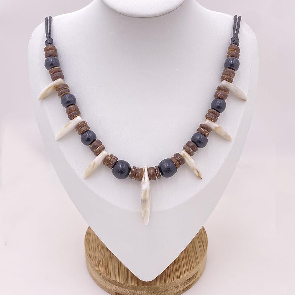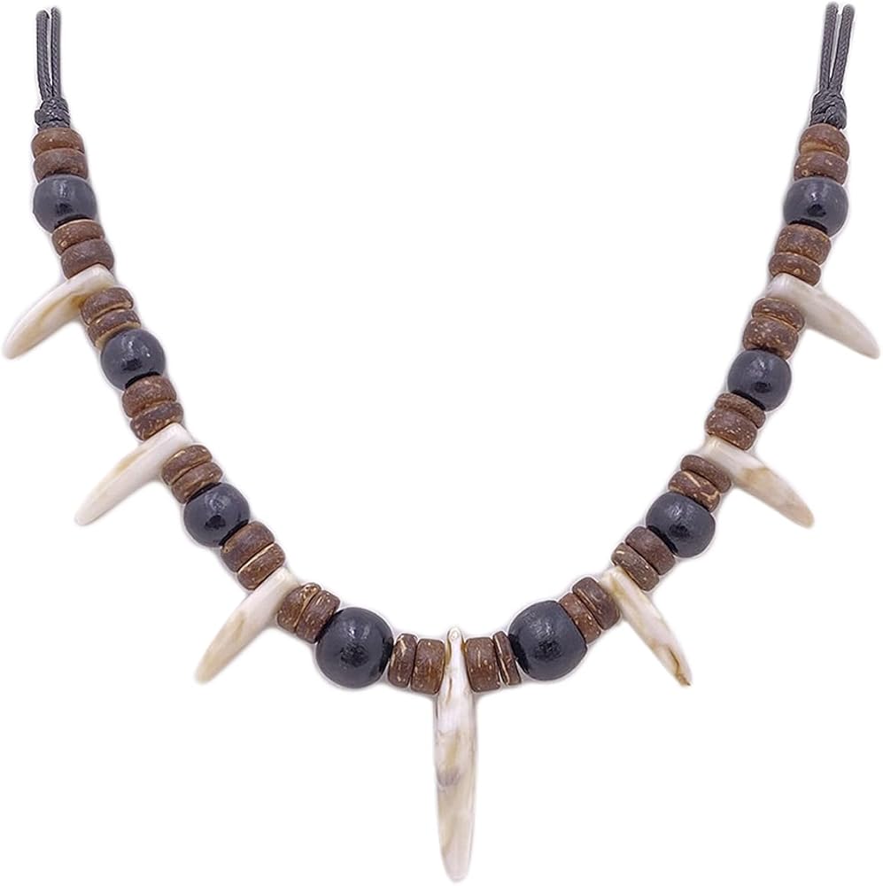Handmade Wooden Bead Resin Tooth Adjustable Caveman Necklace for Men Women