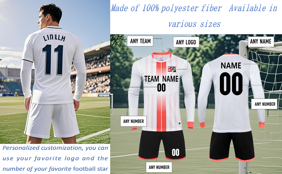 • Our soccer jerseys are made of quick-drying fabric that is breathable, stretchy, durable and lightweight. Ideal for those who love sports.