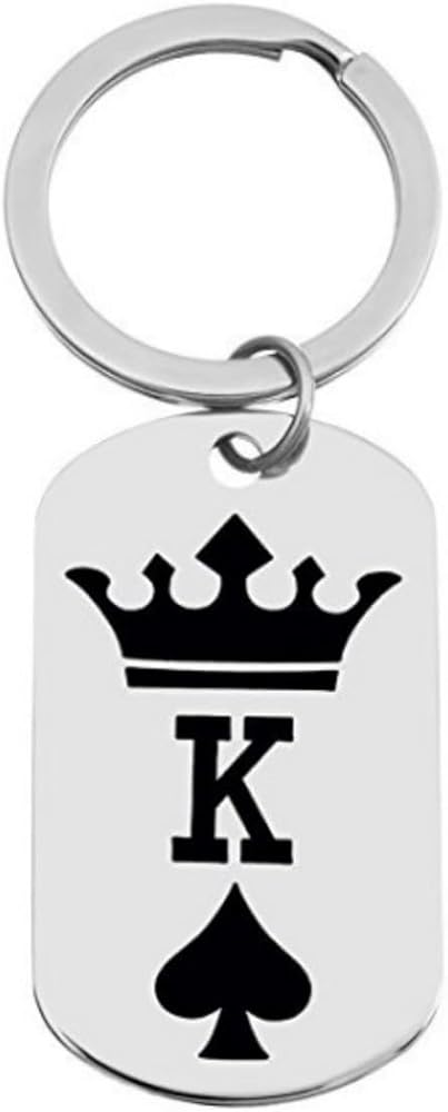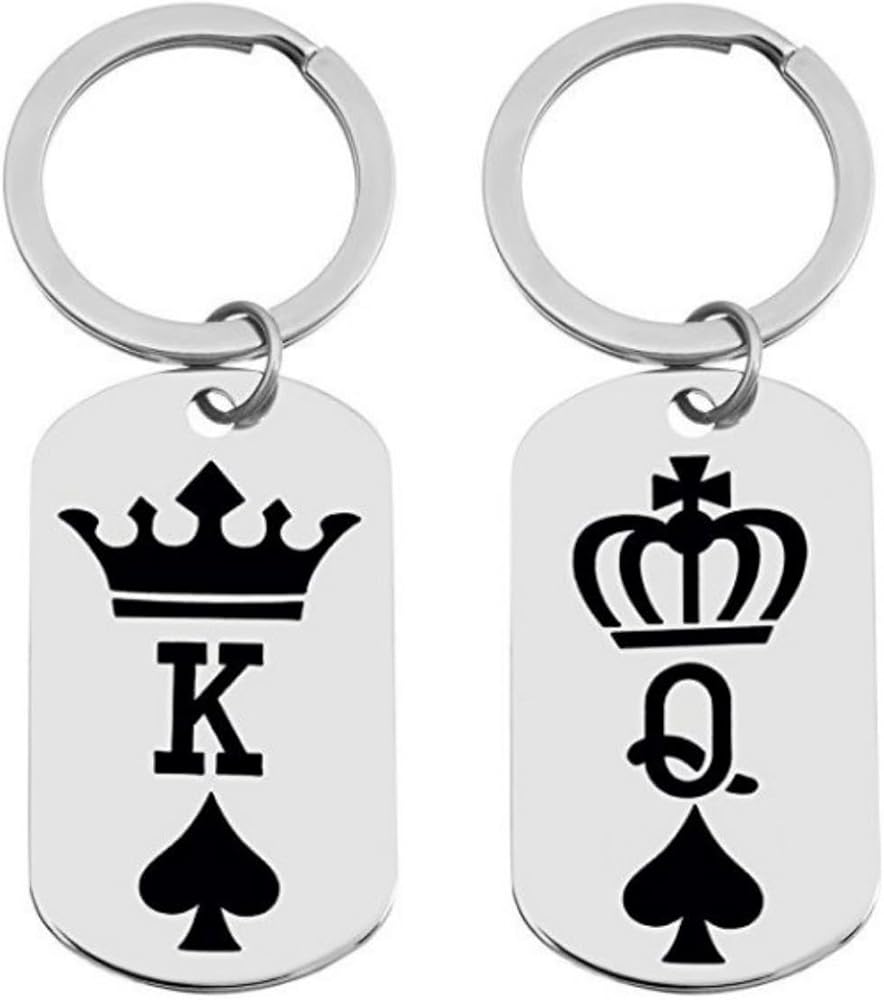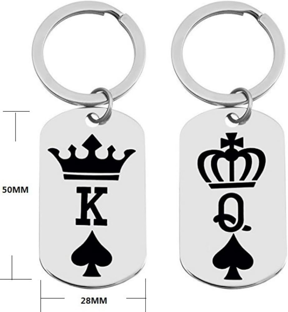 King Queen Crown Heart Spade Charm Key Chain Keychains Retro Modern Style Decor Keyrings for Christmas Valentine Birthday Anniversary