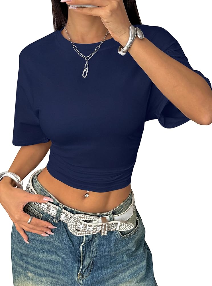 Design: Sexy summer crop top, crew neck, short sleeve, ruched side, slim fit, trendy and stylish. The cropped design adds a touch of femininity to this sexy top