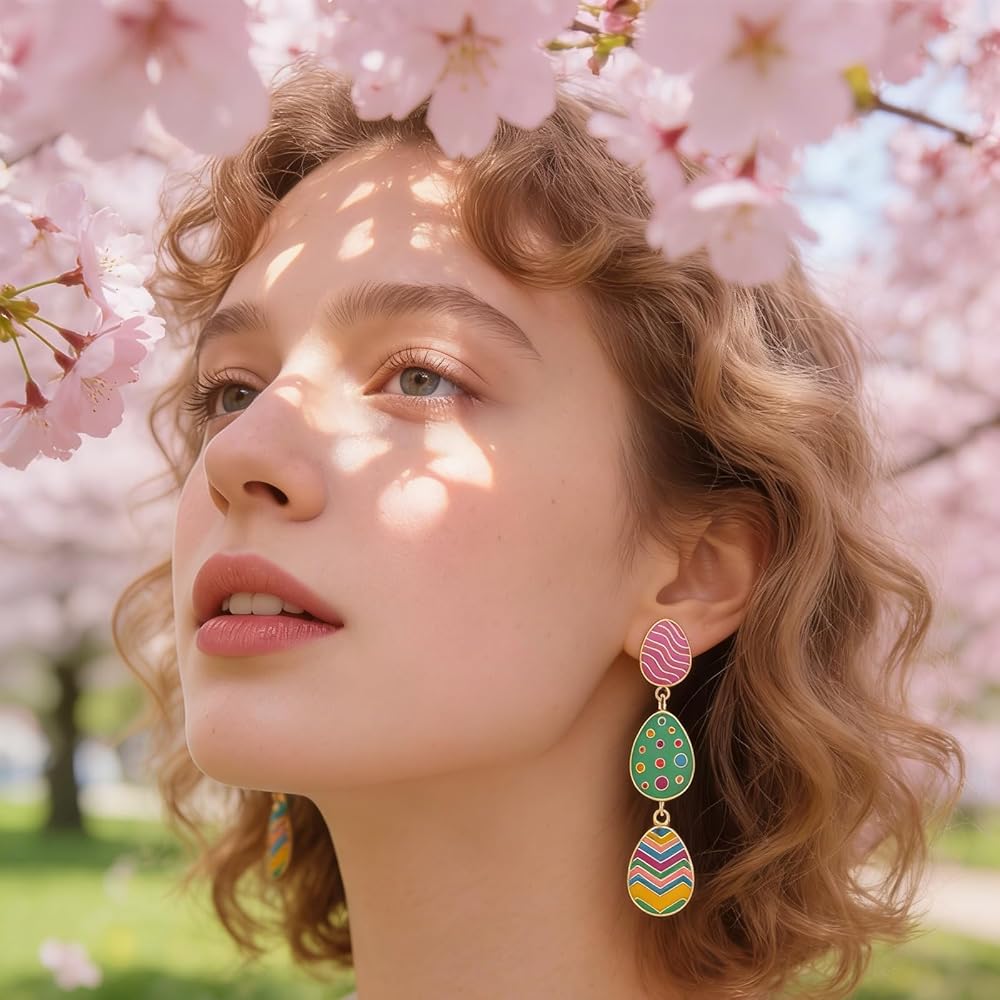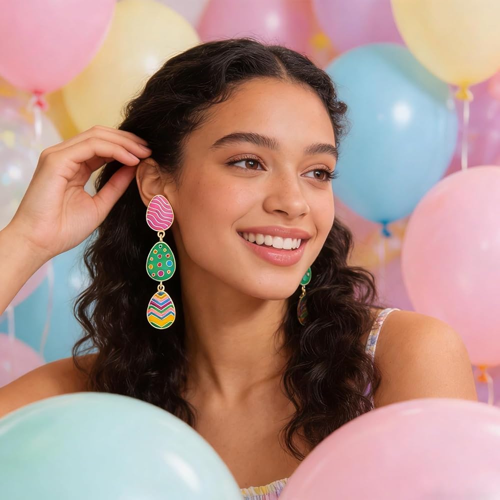 Unique Design: Pink, green, blue and yellow are classic easter color, our easter eggs earrings.The combination of colorful eggs is very dainty and lovely.It will make your more striking and eye catching.