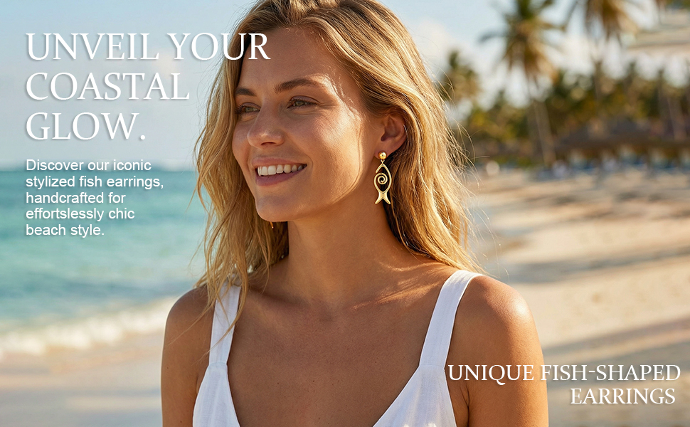 Beach earrings: These fish dangle earrings are perfect for a summer outing or a trip to the beach. The gold fish earrings bring a cool summer sea breeze! A great choice for your summer accessories!