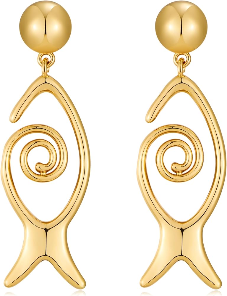 Summer Jewelry: Gold fish earrings are an excellent fashion accessory for beach bikinis and a trendy item for summer. They will refresh you for the entire summer, adding confidence and charm to your look.