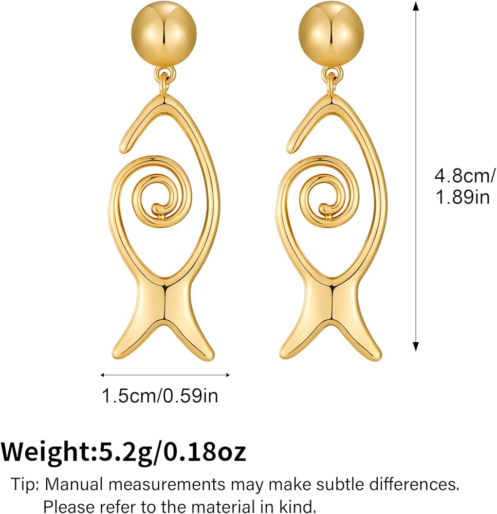 Size of fish earrings: The size of these gold fish dangle earrings is 4.8 cm * 1.5 cm, weight 5.2 g, You can wear it with confidence,such that you can wear them all day long without tiring your ears