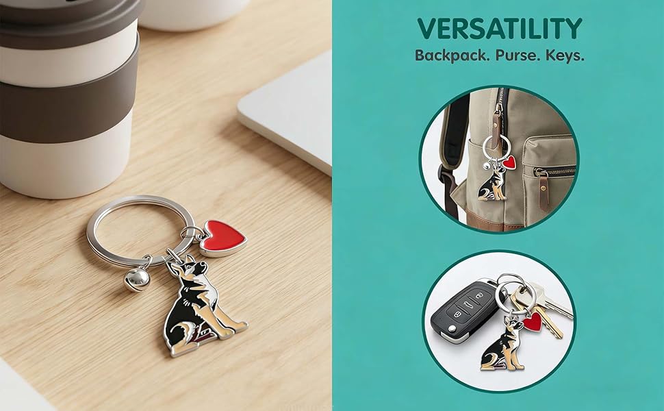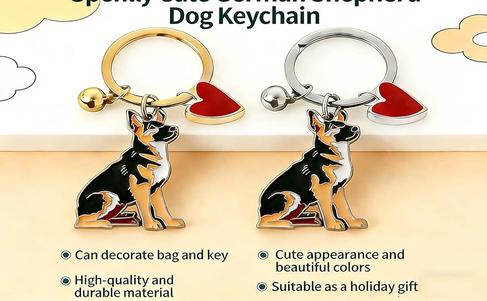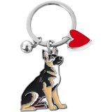 Cute German Shepherd Dog Keychain with Heart Charm, Kawaii Dog Keyring Pet Lover Keyring Gift