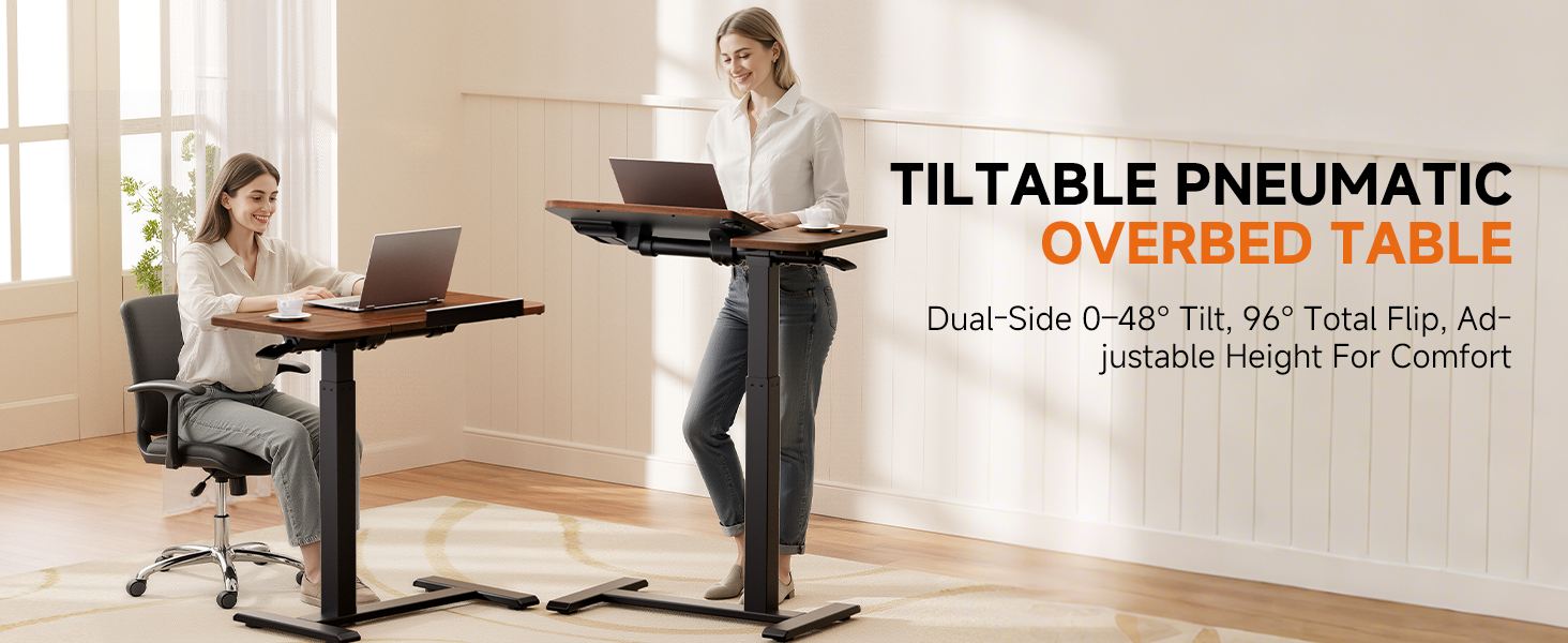 Smooth Pneumatic Height Adjustment: The gas-spring lift system lets this laptop table adjust smoothly from 26.5" to 43", offering a comfortable position whether sitting, standing, or using it as a bedside table by your bed