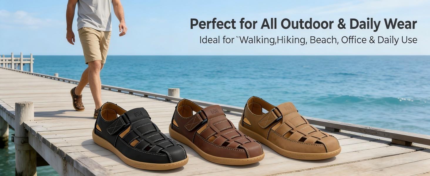 APPLICATION:Men's casual sandals, simple and comfortable, is ideal for office,walking,hiking,traveling,fishing,playing in the beach or any outdoor exercise,and daily wear.