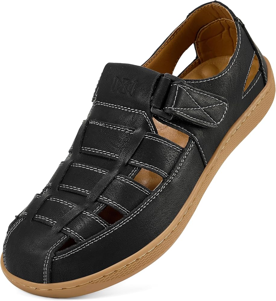 HIGH-QUALITY:Men's closed toe sandals upper is made of premium leather with clear texture.And these leather sandals used Hand stitching so that the fisherman shoes can be durable and firm.