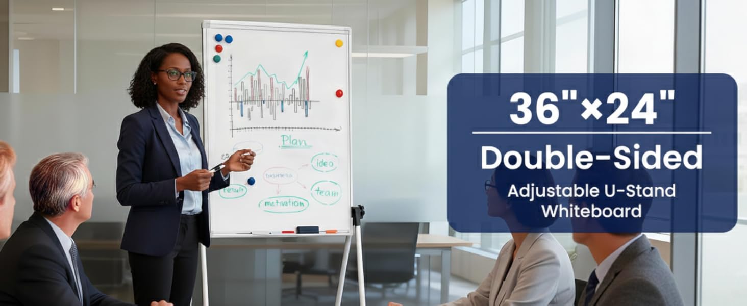 STAYS STEADY WHILE YOU WRITE – Don't let a shaky board ruin your focus. Our reinforced U-shaped steel frame sits firmly on the floor with anti-slip rubber feet. This gives you a rock-solid writing surface that won't slide around, ensuring your notes stay neat and professional during every meeting