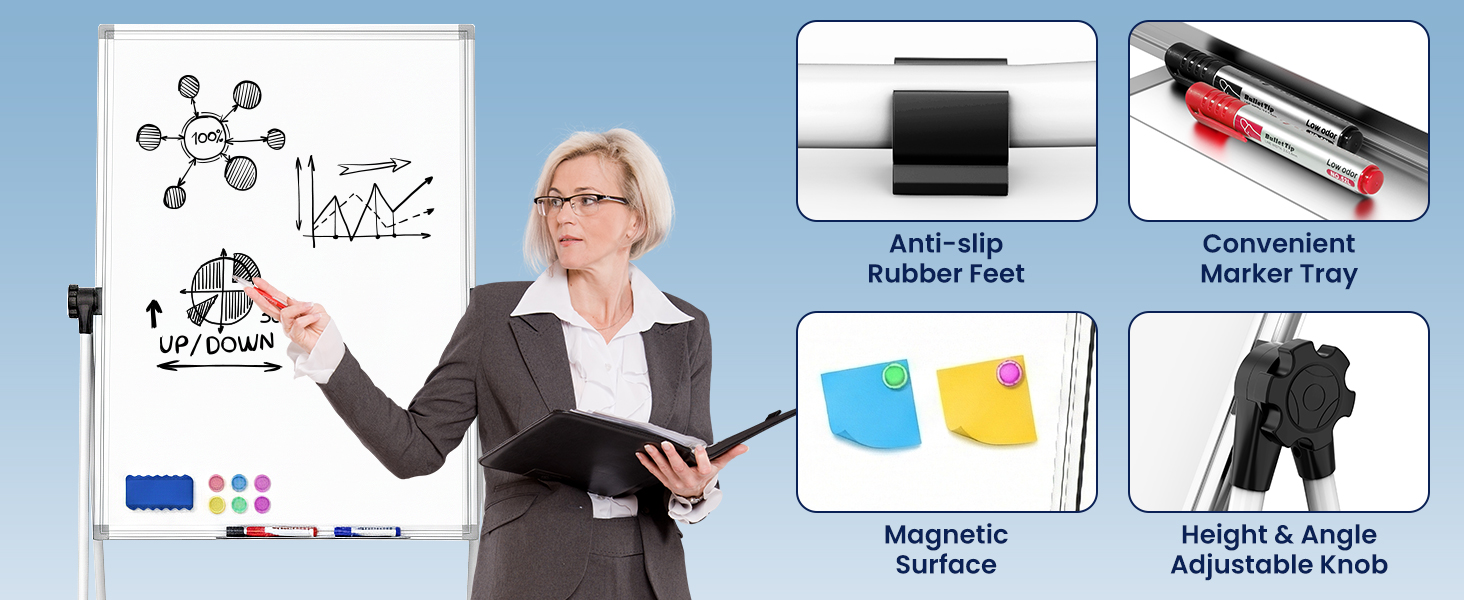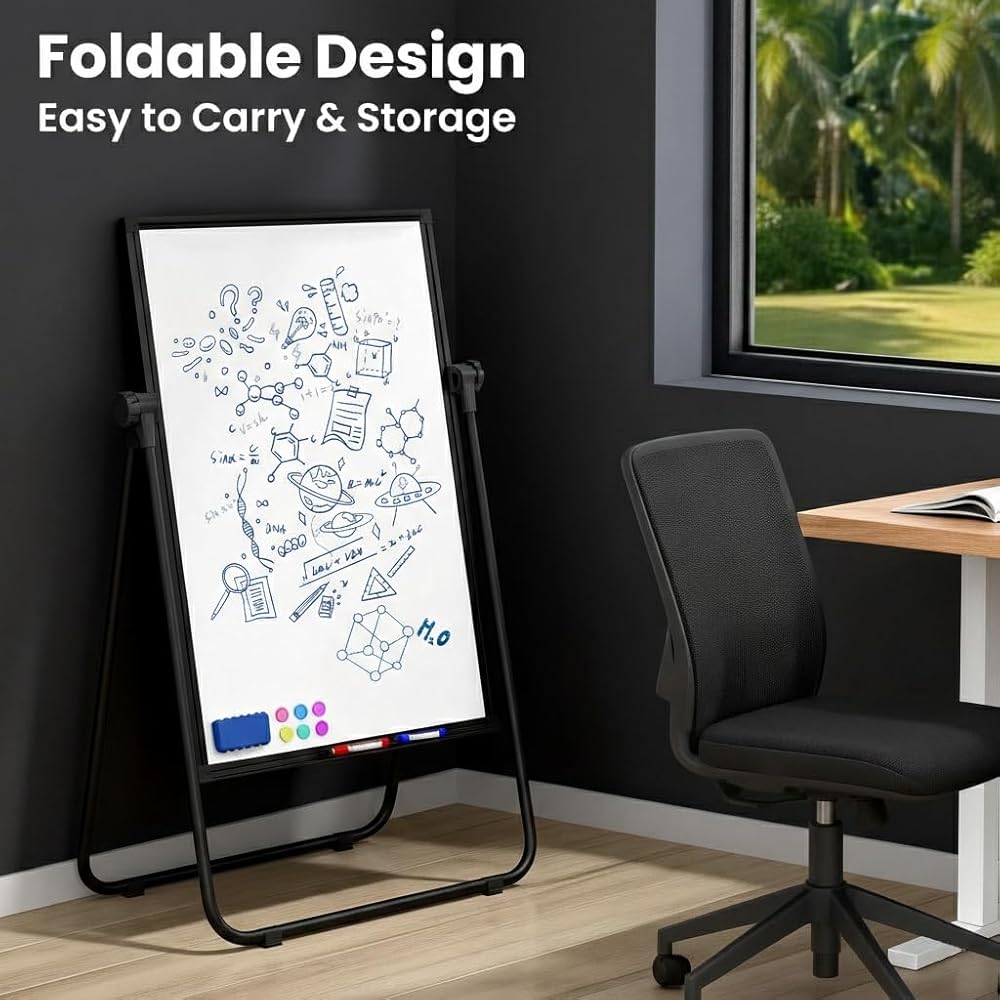 READY TO USE WITH FULL ACCESSORIES – No tools or complicated assembly required—our "open to use" design lets you get to work immediately. We've also included 1 dry eraser, 3 markers (Black, Blue, and Red), and 6 magnets to get you started right away
